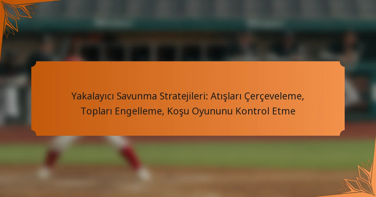 Yakalayıcı savunma stratejileri, oyun sonuçlarını etkilemek için gereklidir ve üç ana alana odaklanır: atış çerçeveleme, topları engelleme ve koşu oyununu kontrol etme. Bu teknikleri ustaca uygulamak, bir yakalayıcının etkinliğini önemli ölçüde artırabilir ve bir takımın genel başarısına katkıda bulunabilir.