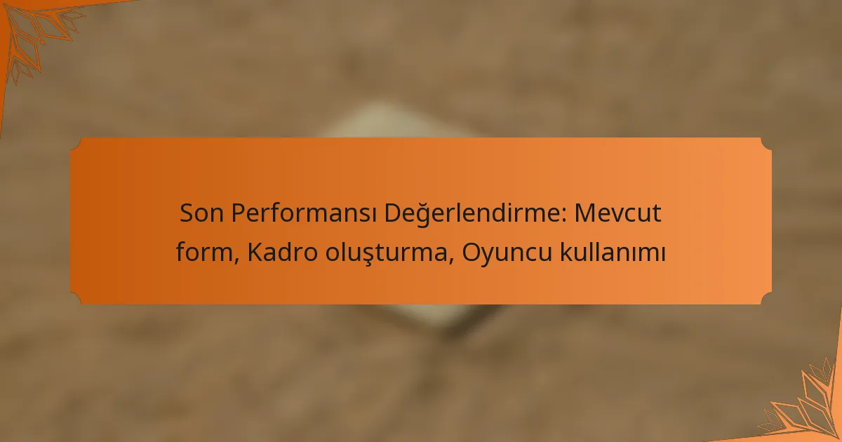 Bir takımın son performansını değerlendirmek, mevcut formunu, kadro yapısını ve oyuncu kullanımını analiz etmeyi içerir. Kazanma-kaybetme kayıtlarını ve oyuncu istatistiklerini anlamak, rekabetçi güçlü ve zayıf yönler hakkında bilgi verir. Ayrıca, kadroları stratejik olarak oluşturmak ve oyuncu yeteneklerini etkili bir şekilde kullanmak, genel takım performansını ve maçlar sırasında uyum yeteneğini önemli ölçüde artırabilir.