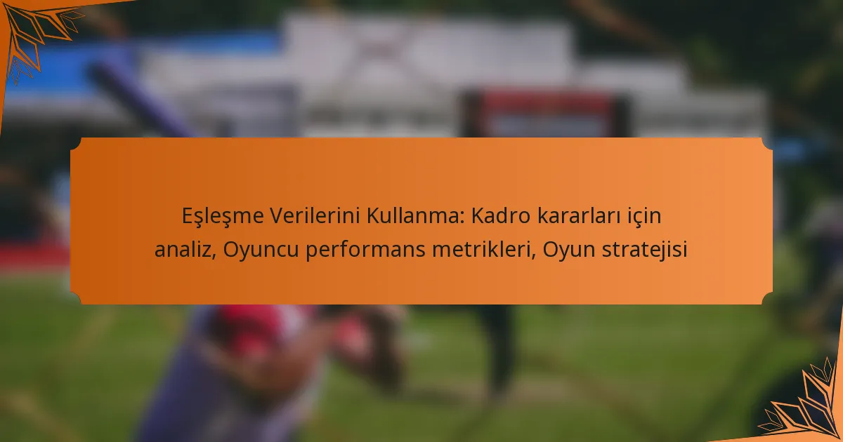 Eşleşme verilerini kullanmak, spor alanında bilinçli kararlar almak için gereklidir; çünkü bu veriler oyuncu ve takım performansını analiz ederek oyun stratejilerini geliştirmeye ve kadroları optimize etmeye yardımcı olur. Analitiklerden yararlanarak, takımlar oyuncu performans metrikleri ve tarihsel eğilimler hakkında değerli içgörüler elde edebilir, bu da daha etkili kadro seçimlerine ve sahada daha iyi sonuçlara yol açar.